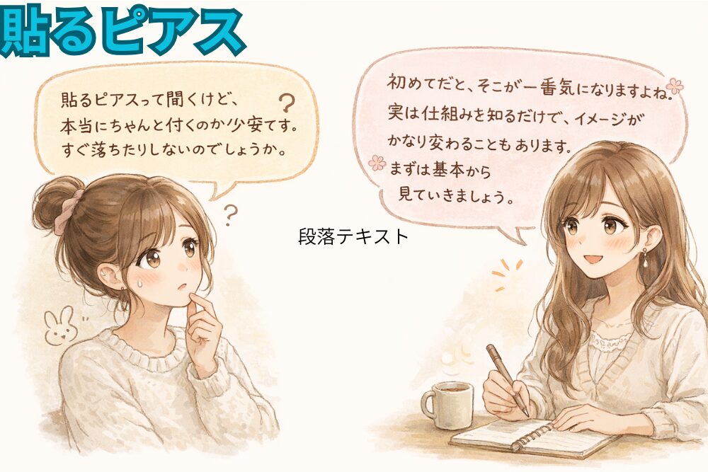 貼るピアスは、医療用粘着剤を使うことで、穴をあけずにアクセサリーを楽しめる方法です。手軽さと肌への配慮を両立した選択肢として、基本を知ることで不安を減らし、自分に合った使い方が見えてきます。
